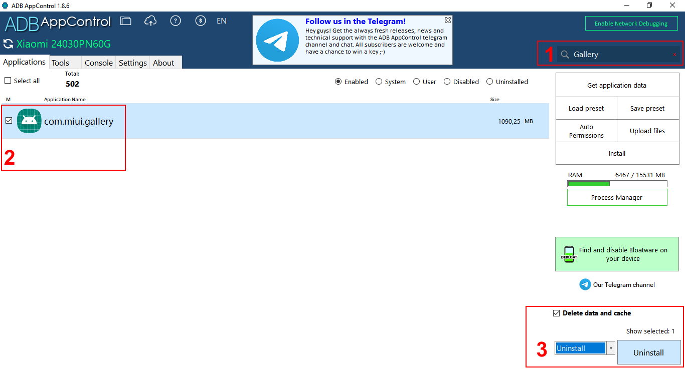 STEP 3: Use ADB AppControl to uninstall corrupted Xiaomi Gallery app